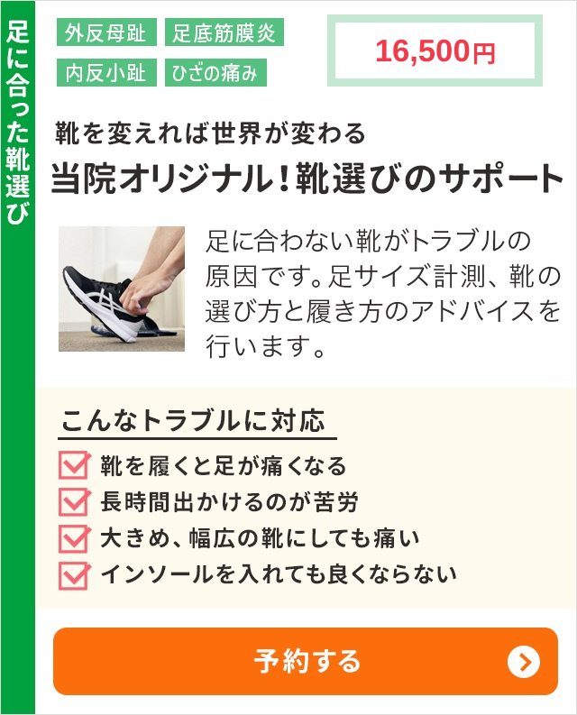 メニュー・料金 体の不調は「足のアーチの崩れ」によって発生します。足裏から全身のバランスを整えて、あなたの健康をサポートします。 足の痛みはもちろん、ひざの痛みや腰痛、頭痛や肩こりなども体の土台である足が原因で起こります。 痛みの少ない整体 足から全身を整える 再発しにくい身体づくり ※クチコミが良くても「実際に受けてみないとわからない…」というのがホントのところ。 そこで「まずは1度、気軽に試していただきたい。」という想いを込めてホームページを見た方限定の初回特別価格のご案内です。ぜひ1度ご連絡ください。